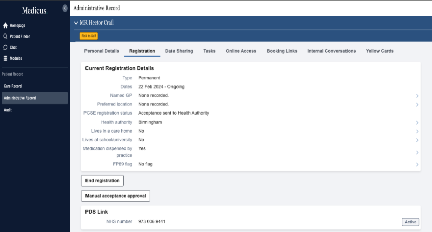 Once a patient is registered in Medicus, you can view and manage their registration details from their administrative record. This guide shows you how to do this in Medicus.