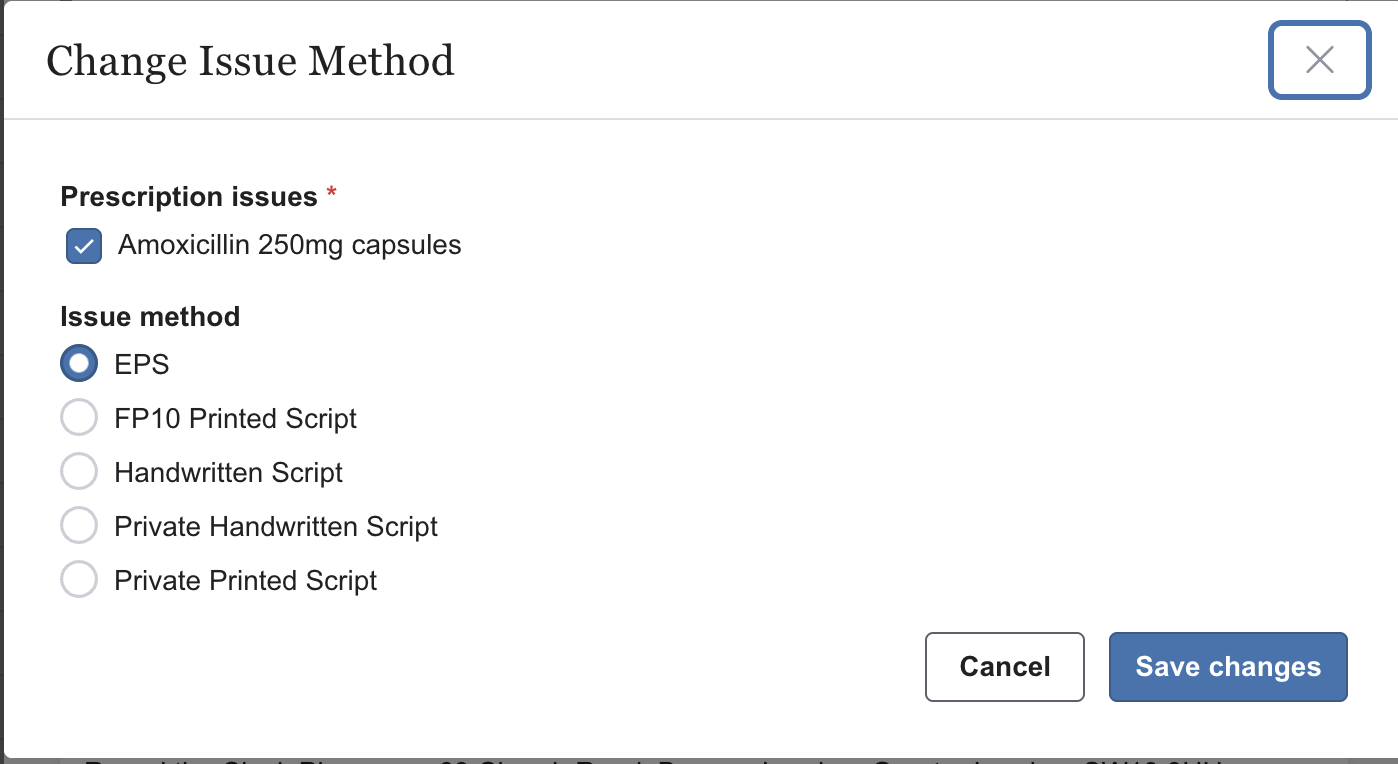 To amend the method of issuing the prescription, select the pencil icon on the 'Issue Medication' form.