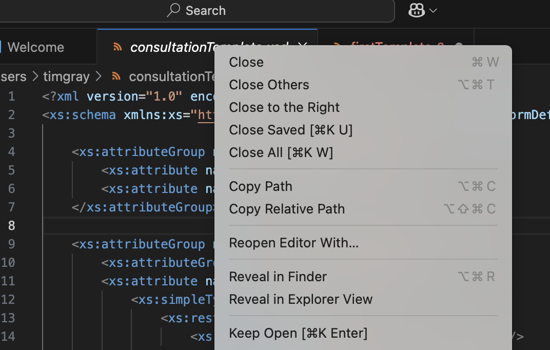 ConsultationTemplate.xsdfile, right click on the tab and click “Copy relative path”