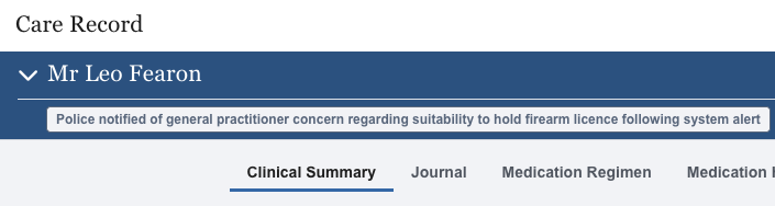 - Police notification of GP concern regarding the patient's suitability for a firearm license