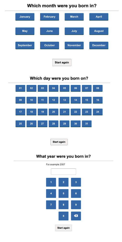 They then select their birth month, their birth day, and finally type in their birth year using the on-screen keyboard.